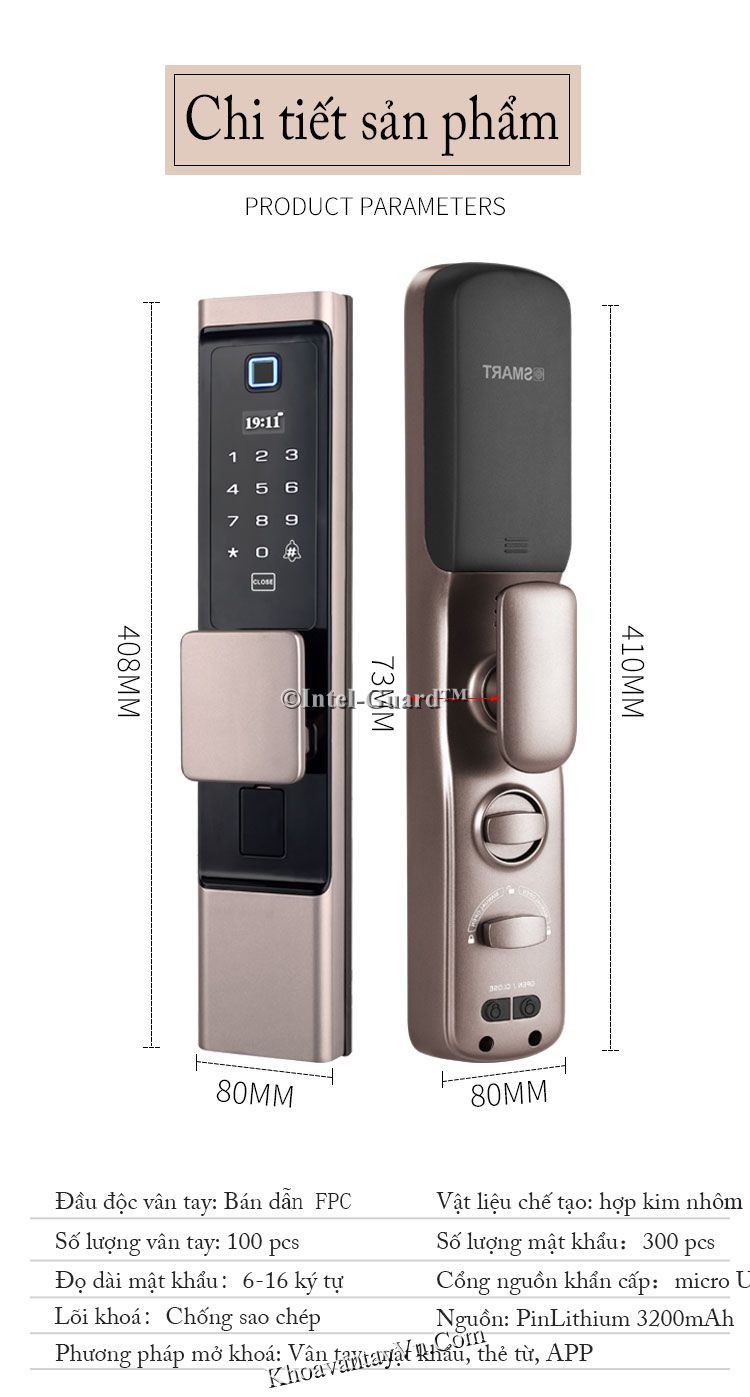 - Có dung lượng lưu trữ cao: 100pcs vân tay và 300 pcs mật khẩu kèm thẻ từ.