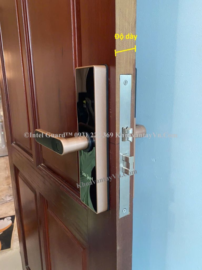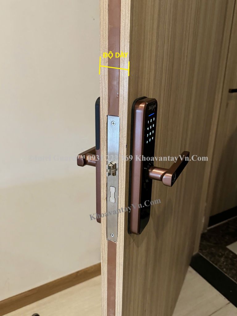 Độ dày cửa tối thiểu phải từ 35mm trở lên mới có thể bắt được ốc bắt 2 mặt khóa.