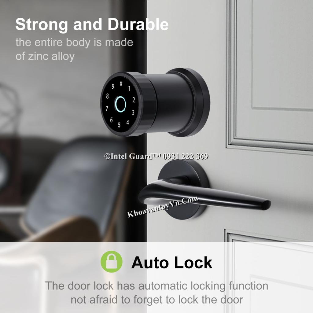 - Tự động chốt khoá khi cửa phòng được khép lại: Sau 3-8 giây mở khoá thì bộ phận điện tử trong khoá vân tay thông phòng tự động vô hiệu hoá cần gạt.