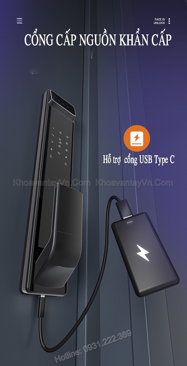 Khóa điện tử tích hợp cổng sạc cấp nguồn khẩn cấp