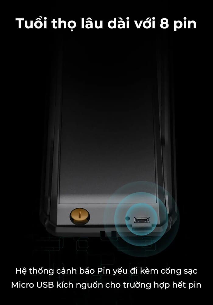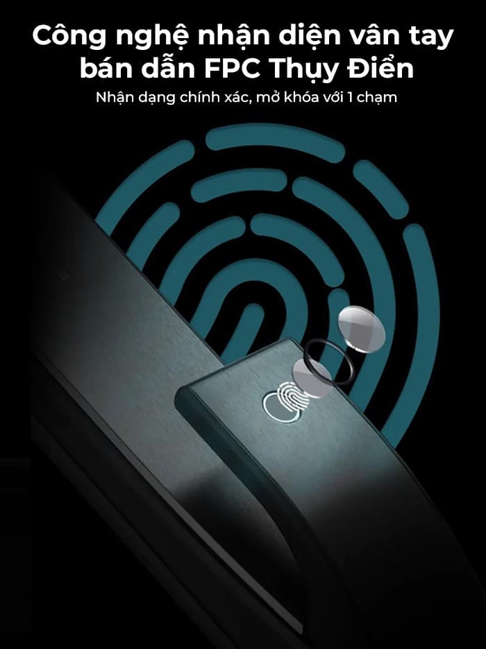 Mở khóa bằng cảm biến vân tay sinh trắc học nhận dạng chính xác, an toàn. Công nghệ vân tay FPC Thụy Điển Nhận diện chưa đến 0.5 giây Tỷ lệ chính xác cao, chống sao chép vân tay