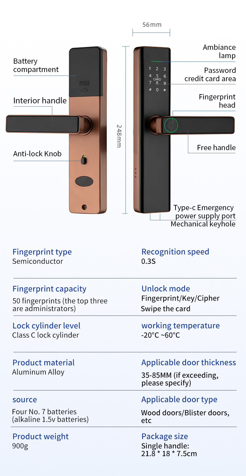 - Vân tay bán dẫn đáp ứng thời gian mở khóa nhanh chóng dưới 0.3s.
