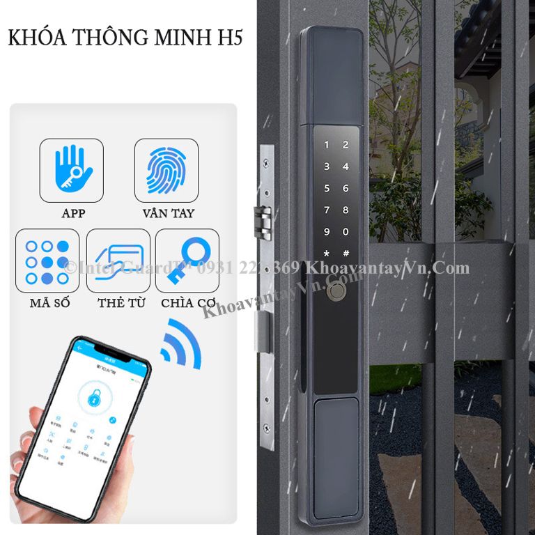 Khóa thông minh cửa nhôm H5 kháng nước kháng bụi IP56