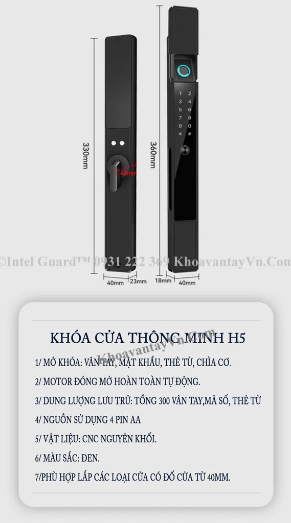 Khóa thông minh cửa nhôm H5 với nhiều phương pháp mở khóa hiện đại.