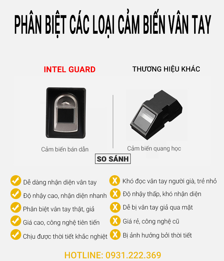 KhoavantayVn.Com tự hào là nhà cung cấp khóa vân tay thông minh thương hiệu Intel Guard với kinh nghiệm trên 5 năm trong ngành khóa điện tử, khóa cửa từ, chúng tôi luôn cung cấp các sản phẩm khóa cửa thông minh có chất lượng cao cấp và được trang bị các công nghệ bảo mật hiện đại nhất. Trong đó sản phẩm nòng cốt là khóa vân tay thông minh sử dụng công nghệ bảo mật sinh trắc học. Các sản phẩm trên hệ thống KhoavantayVn.Com của chúng tôi đều được trang bị cảm biến vân tay bán dẫn FPC cao cấp nhất của Thụy Điển đáp ứng thời gian nhận diện nhanh chóng và an toàn. Ngoài ra mỗi sản phẩm đều áp dụng đa phương thức mở khóa như: mật khẩu, thẻ từ, khóa cơ học đáp ứng mọi nhu cầu của nhiều đối tượng khách hàng khác nhau.
