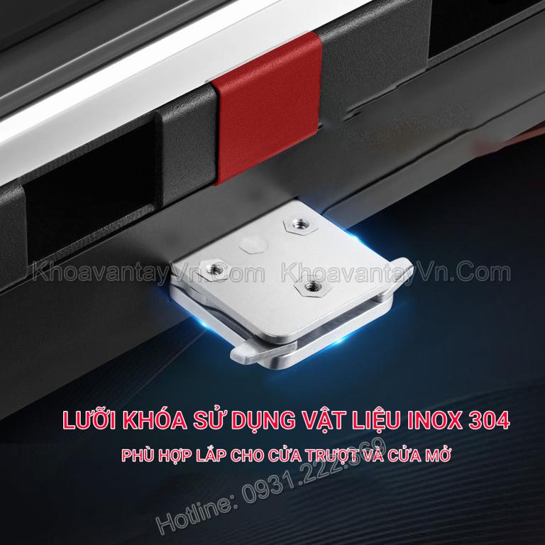 Lưỡi chốt khoá vân tay thông minh cửa kính MK189 sử dụng vật liệu Inox 304