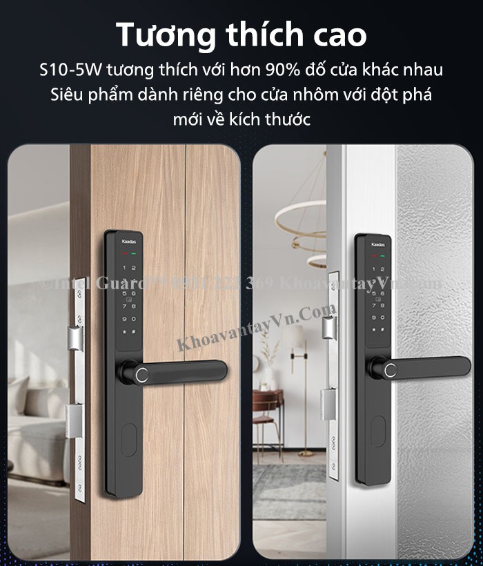 Với thiết kế tối ưu nên Khóa thông minh Kaadas S10-5W dễ dàng lắp đặt cho các loại cửa nhôm hệ 55, hệ xingfa, cửa mở quay, trượt (lùa) trên thị trường.