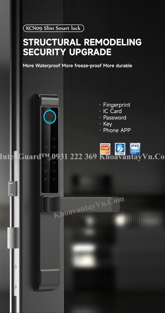 - Dù thiết kế nhỏ gọn để tối ưu không gian lắp đặt nhưng tính năng hay tiện ích được trang bị trên khóa thông minh cửa nhôm kính KCN09 không hề ít chút nào. Bạn vẫn có 6 cách thức mở khóa khác nhau như: Vân tay, mật mã, thẻ từ, chìa cơ, APP, Remote (Tùy chọn).