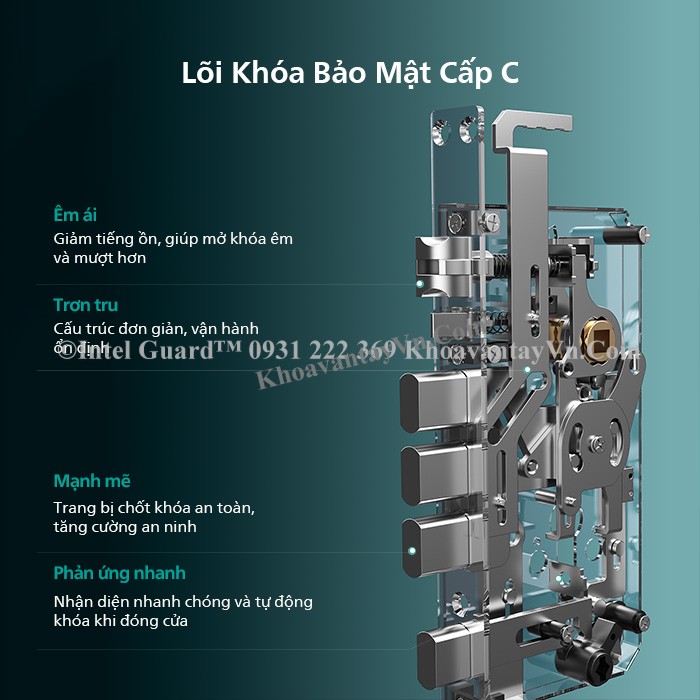 Một số tính năng an toàn thông minh chính: Có thể kết hợp 2 phương pháp mở khóa đồng thời để tăng tính bảo mật. Tạo ra 3 tổ hợp mở khóa như: Vân tay + Mật mã, Mật mã + Thẻ từ, Vân tay + Thẻ từ. Dung lượng lưu trữ thông tin mở khóa lên tới 100 vân tay, 100 mật mã, 200 thẻ từ..