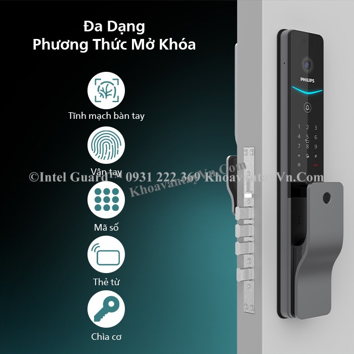Khóa thông minh Philips DDL720-MVP là mẫu khóa mới ra mắt gần đây của thương hiệu toàn cầu Philips với các tính năng mở khóa tân tiến tiện lợi như: Mở khóa bằng khuôn mặt, tĩnh mạch lòng bàn tay, vân tay, mật mã, thẻ từ, chìa cơ, app.